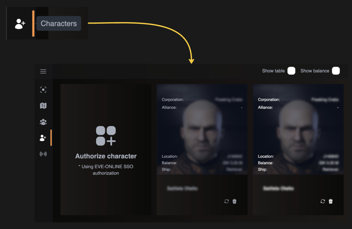 Map Active Characters Page — Interface Guide